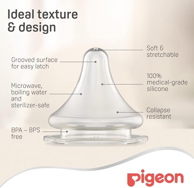 - The textured surface of Pigeon Nipple allows the baby to latch on easily.